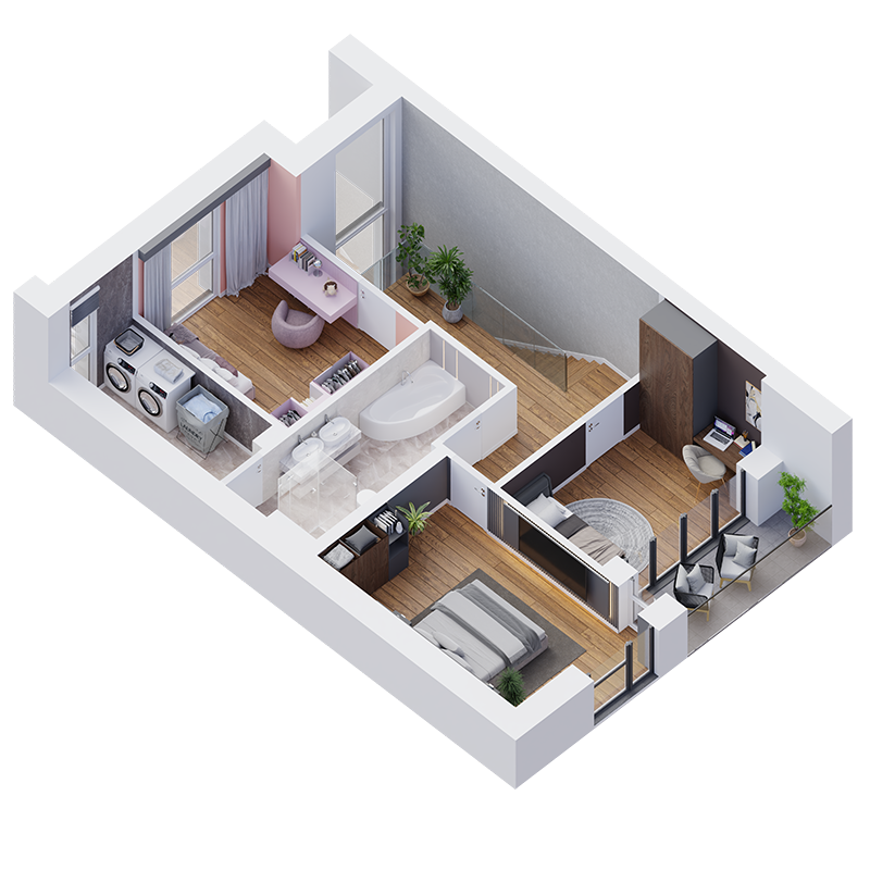 Ponad 120 m² przemyślanej przestrzeni daje Ci swobodę, komfort i układ, który ułatwia każdy dzień. Jasny salon z otwartą kuchnią tworzy przytulne centrum domu, idealne do wspólnego spędzania czasu. Praktyczna spiżarnia, osobna pralnia i przestronna łazienka pomagają utrzymać na co dzień porządek. Wysokie pomieszczenia oraz duże okna dodają wnętrzom lekkości i światła, sprawiając, że każde pomieszczenie staje się bardziej przestronne. To dom, który naturalnie dopasowuje się do Twoich potrzeb.
